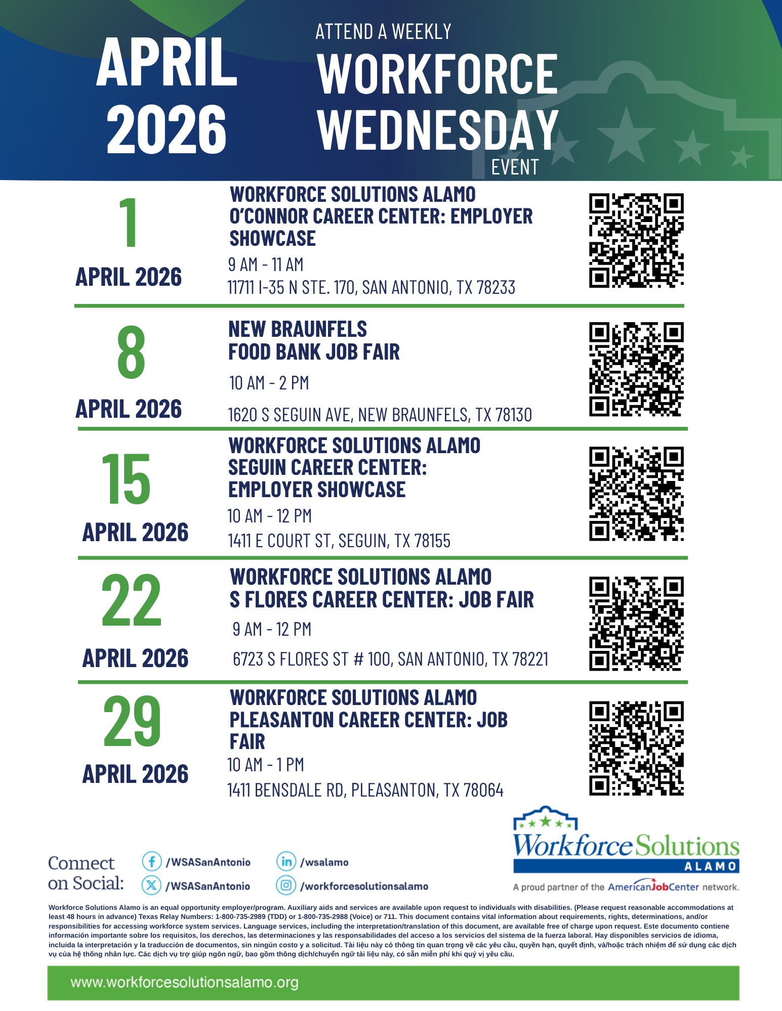 Registration Link: Workforce Solutions Alamo: Workforce Wednesday Pleasanton -Job Fair Tickets, Wednesday, Apr 29 from 10 am to 1 pm | Eventbrite